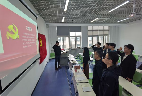 党课结束前,支部党员重温入党誓词,更加坚定初心使命。