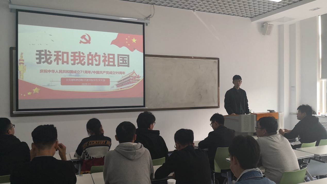 学生党支部于WH1507A教室举办“我和我的祖国”爱国主义教育党课学习。本次党课由学生党支部书记孙士强主讲,2020级辅导员李宇航、学生党支部全体预备党员和发展对象参加了本次党课。