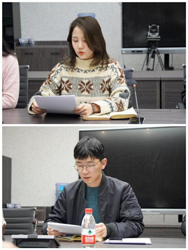 会议开始,与会党员全体起立,奏唱国歌。随后,教工党支部副书记鲁倩妮、学生党支部书记孙士强分别结合自身岗位,从支部党建工作开展情况、存在问题,以及改进措施与工作计划等方面依次进行了现场述职。
