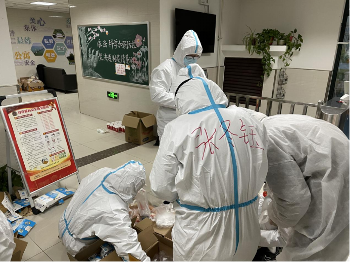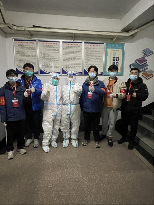 学生党支部即刻成立党员先锋队。截至目前,累计共有29名学生党员投入到学生的三餐运送、核酸检测、物资配送、宿舍消杀等一线志愿服务工作中。