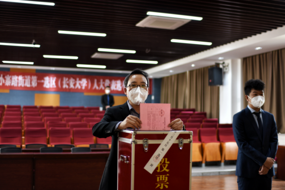 在渭水校区鸿远教学楼分别设置两处投票会场,组织学院师生选民积极参与雁塔区第十八届人大代表换届选举投票工作。