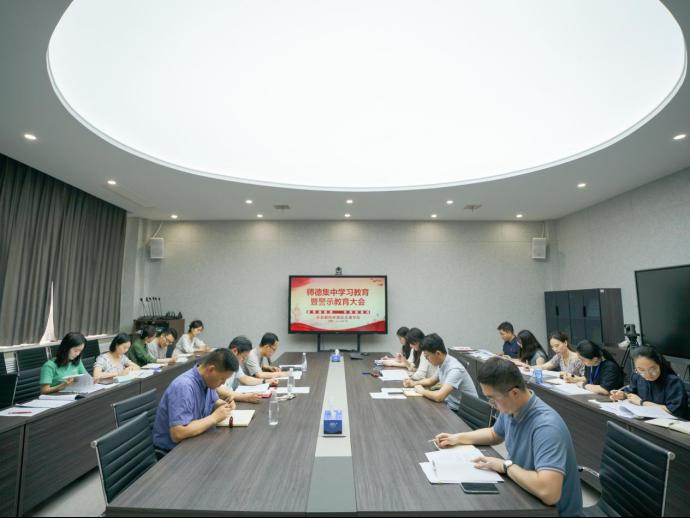 在四层会议室召开师德集中学习教育暨师德警示教育大会,会议由院党总支书记赵亮主持,并就下一步工作进行了部署安排。学院全体教职工参会。
