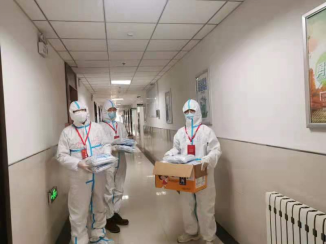 在学院党总支副书记、副院长姚以亮的组织带领下,学院师生在寒冬为志愿者和同学及时补充发放隔离服、口罩、医用酒精等防疫物资,为战疫生活又增添了一份安全与保障。