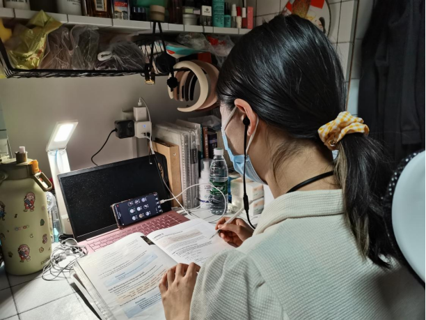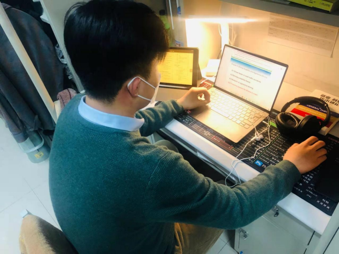 学生在宿舍进行线上学习