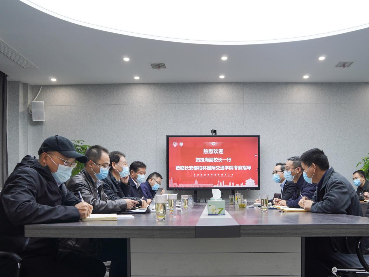 贺拴海听取了学院中外合作办学运行发展以来的工作汇报,并与学院领导班子进行座谈交流。他对学院成立以来在各项事业中所取得的发展成果及逐步扩大的国内与国际影响力给予高度认可,并针对学院当前阶段在用人制度、教学管理、财务管理、办学空间等方面所面临的困难与挑战给出指导建议与反馈。他表示,学校高度重视学院此次综合改革发展工作,各职能部门也会达成共识,积极配合,依据学院综合改革方案提供相应支持。同时,他要求学院提高思想站位,强化创新意识,在综合改革过程中“大胆提需求,做出亮点来”,争取在中外合作办学领域彰显自身办学特色,形成“长大模式”,为学校“双一流”建设与国际化人才培养做出更大贡献。