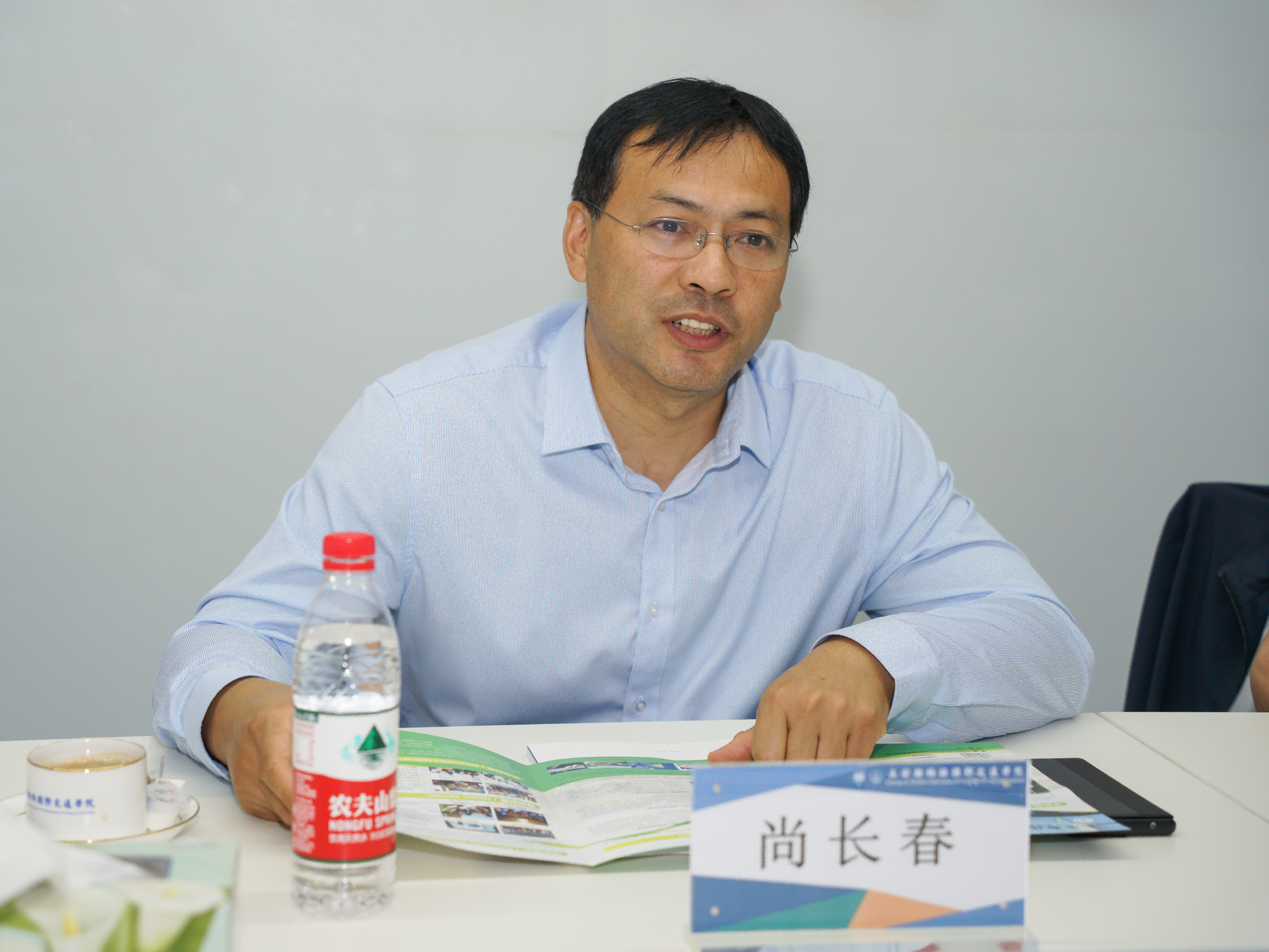 首先,汪海年代表学院欢迎尚长春秘书长莅临学院指导工作。他从学院发展历程、合作院校实力、开设专业优势、人员组织架构及人才培养等方面介绍了黄色仓库概况