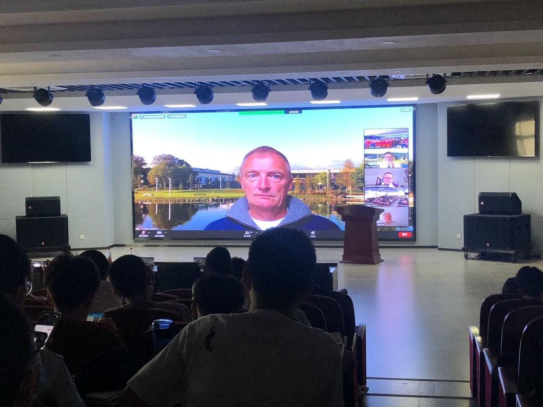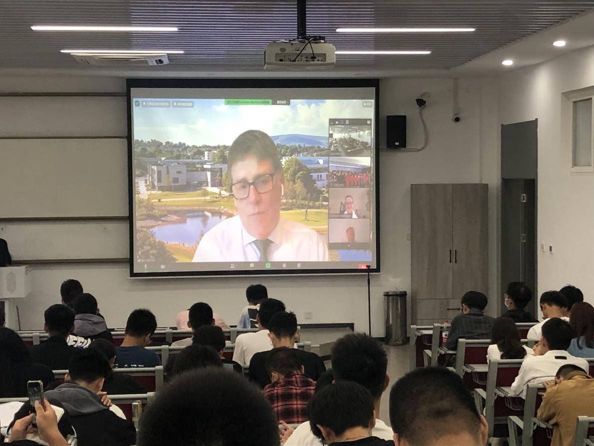 在渭水校区鸿远教学楼召开了2021级新生都柏林大学欢迎会及都柏林大学教授讲专业系列活动。本次会议采取远程线上的方式进行,都柏林大学中国地区教务长Paul Fanning,学院副教务长Catherine Mac Kenzie,都柏林大学道路桥梁与渡河工程专业负责人Beatriz Martinez Pastor教授,车辆工程专业负责人William Smith教授,交通运输专业负责人Brendan Williams教授及全体2021级新生参加了本次会议。