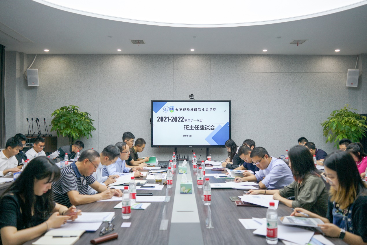于9月2日在鸿远教学楼四楼会议室召开2021-2022学年第一学期班主任座谈会。学院党总支书记、院长汪海年,党总支副书记、副院长姚以亮,学院特聘顾问杨光辉,学院各年级班主任及学生事务部教职工参加了此次会议。会议由姚以亮主持。