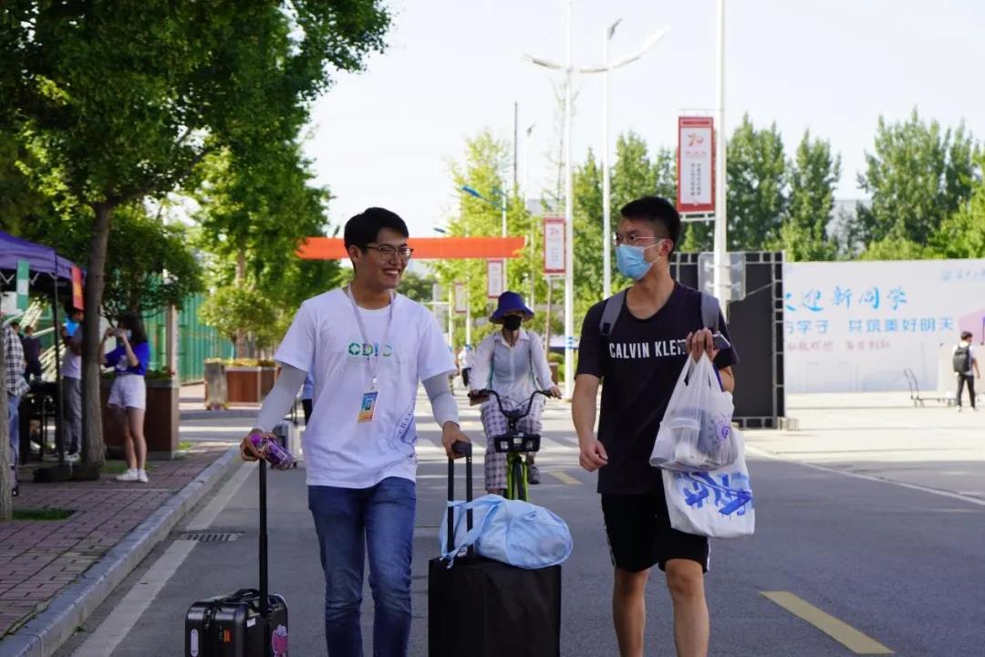 新生报到注册在朝晖体育场西侧进行。炎炎烈日,难抵新一届国交学子炽热的求学热情。8月24日下午三点,黄色仓库