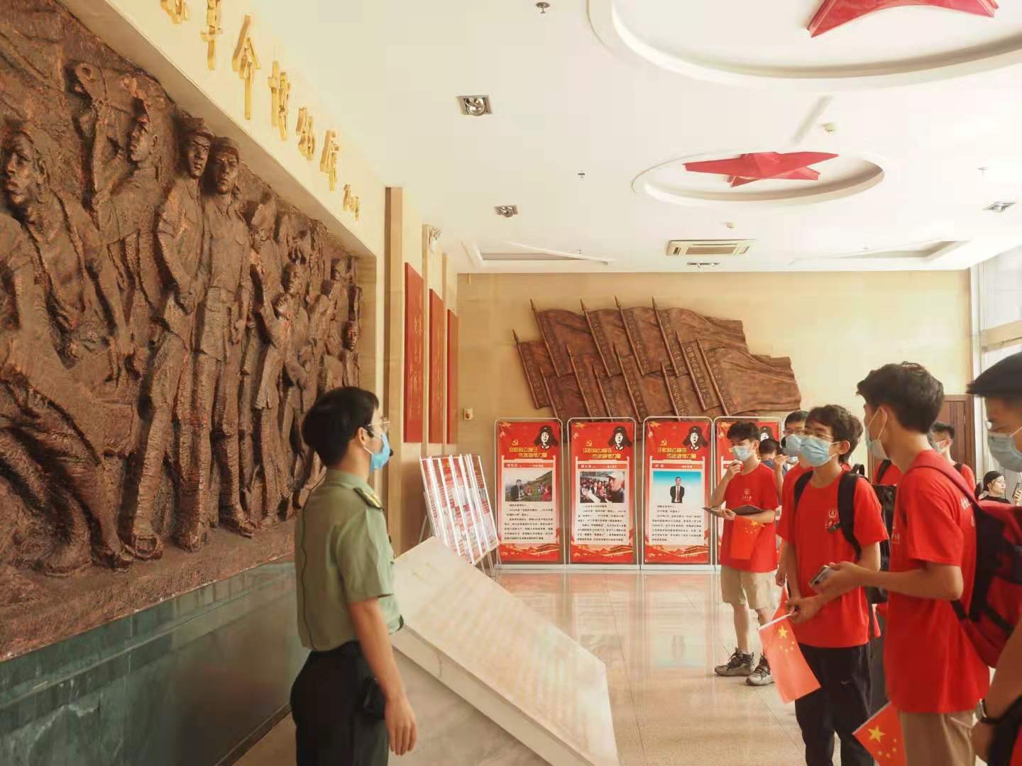 7月25日,实践队来到金寨县革命博物馆,在讲解员的讲解下,一幅壮丽的“家家闹革命,户户有烈士”的金寨革命图呈现于队员们的脑海中,小小的金寨县竟培育出了一名上将、八名中将、十五名少将和一万一千多名烈士。将士们抛头颅洒热血、置生死于度外的精神极大鼓舞了队员们。