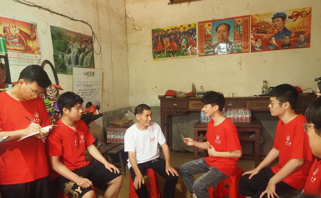 2016年,习近平总书记曾来到大湾进行视察,与当时还是贫困户的陈泽申老人进行了亲切的交流。实践队员对陈泽申老人进行了采访,老人感慨在政府部门、村干部和村民的不断努力下,大湾村的乡村建设事业蒸蒸日上。通过对大湾村的走访,队员们还了解到村民早已从过去的旧楼、危楼搬迁到了新建的住宅里,村内的交通、医疗、教育条件都有了极大的改善。