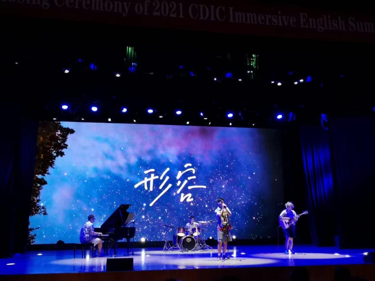 当铿锵激昂的架子鼓声、富有节奏感的电吉他音与清脆悦耳的钢琴声相互碰撞,青春的风采在主唱的歌声中展现得淋漓尽致。乐队用一曲《形容》,回顾了朝气蓬勃、团结合作的夏令营生活。