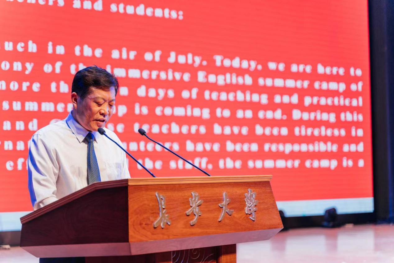 党总支书记、院长汪海年为闭幕式致辞,他指出,浸入式英语夏令营是学院着力打造的常规特色品牌活动,本次英语夏令营克服了全球疫情的阻碍,历经多方努力,在总结之前成功经验的基础上,又实现了新的突破。学员们在夏令营中积极主动地参与到英语交流学习之中,真正实现了“学中玩,玩中学”的兴趣教学。他希望同学们珍惜友谊,不断提升自身的英语表达能力和全球化视野。
