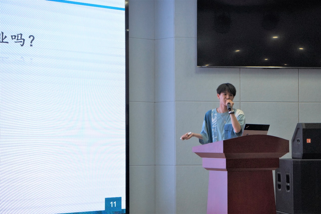 随后,聂显懿以自己的亲身经历,向同学们分享了自己本科期间充实多彩的学习生活,以及在申请海外院校时面临的困难与处理经验。聂显懿提到,大学期间需要早规划早准备,跳出舒适圈大胆抉择,因为机会只会留给有准备的人。聂显懿特别强调心态的重要性,任何时候都要明确自己的目标,知道自己在干什么,然后按部就班的完成,最终一定会有好的结果。