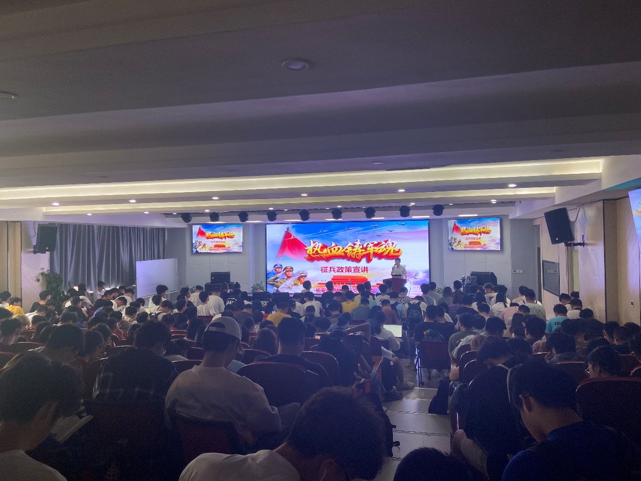 在鸿远四楼报告厅举办2021年征兵入伍政策宣讲活动,本次活动由学生事务部副主任孙士强主讲,2020级全体本科生参与。