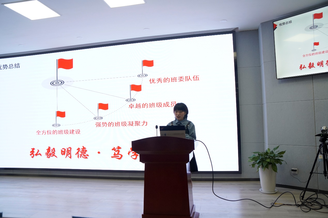 随后,来自经管学院的金豆豆分享了班集体凝聚力提升和建设管理方面的经验。金豆豆提到,班干部首先要保证自身的能力过硬;其次,班级内部按小组管理、积极整理并记录班级日常活动、共享学习资料以营造良性竞争氛围等都是促进班级体健康发展的好方法;最后,金豆豆分享了各项班级荣誉的申报经历,鼓励同学们创先争优,打造良好的班级氛围。