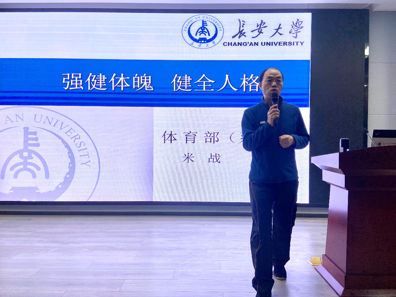 米战老师的报告主要分为政策解读和日常体育锻炼常识两个部分。首先,米战老师详细解读了中共中央、国务院发布的《关于全面加强和改进新时代学校体育工作的意见》和学校关于国家学生体质健康标准的实施办法,并以毕业要求和各类评奖评优中对体测成绩的要求为例,强调体质锻炼在大学中的重要性。之后,米战老师从运动项目的选择、运动中、运动后的注意事项等方面分享了日常体育锻炼的常识。