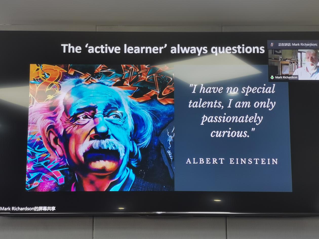 随着课程的深入,Mark Richardson教授对‘active learning’做出更深的阐述。积极的学习者善于把大脑中的现有数据和学习期间获得的新数据联系起来,他们有自己的学习节奏和目标,并且善于总结方法。那么怎么做到‘active learning’呢?教授认为最重要的一点就是: 在读一篇想读的教科书文章时,善于在纸上写出具体的问题。正如教授所引用的爱因斯坦的名言“I have no special talents, I am only passionatelycurious.”