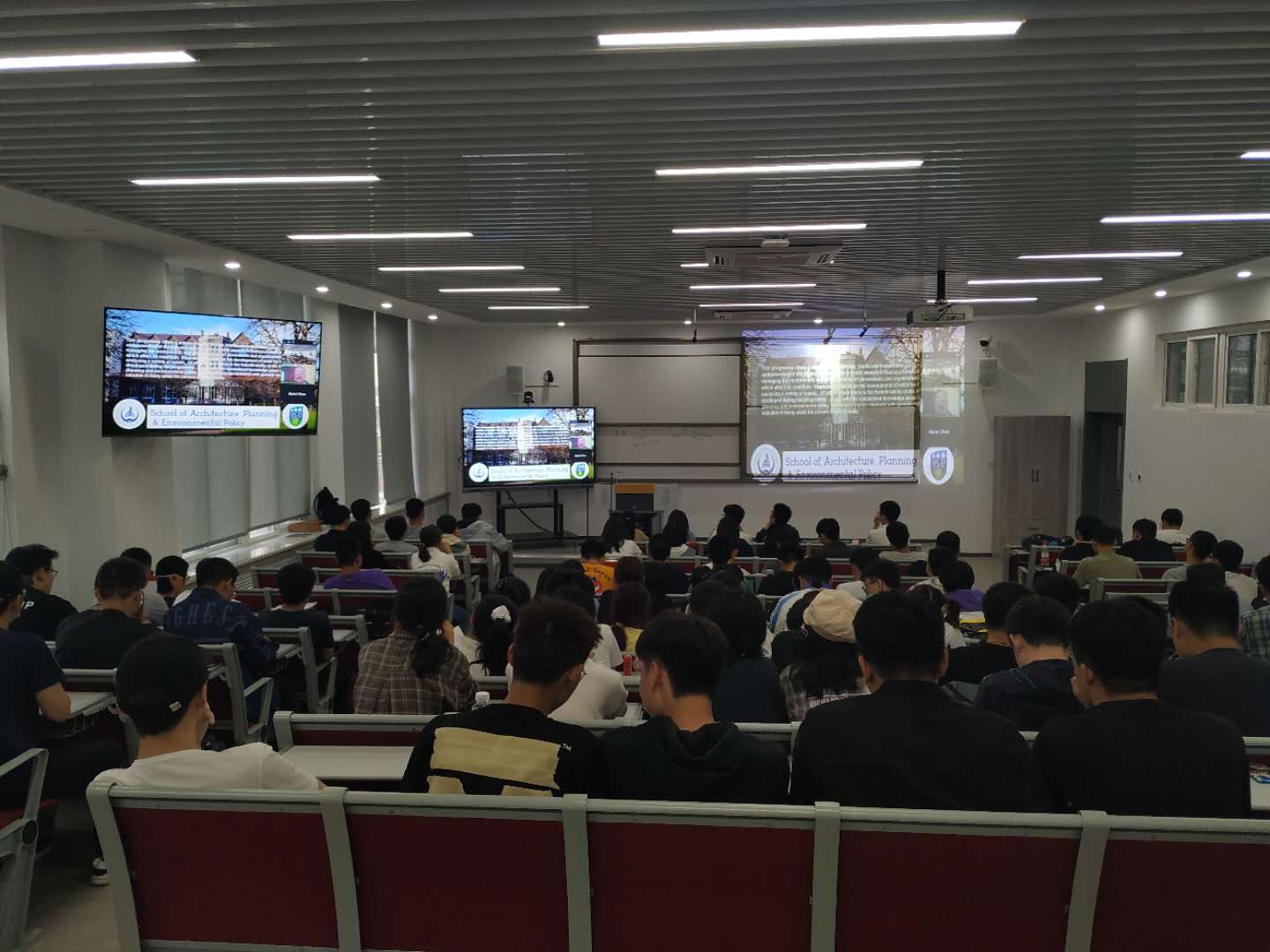 在鸿远教学楼高速网络交互式教室举办中外合作办学2020级新生都柏林大学教授讲专业活动。都柏林大学(UCD)车辆工程专业负责人WilliamSmith教授、交通运输专业负责人BrendanWilliams教授与都柏林大学(UCD)合作办学主管BeiniChen参加了本次会议。