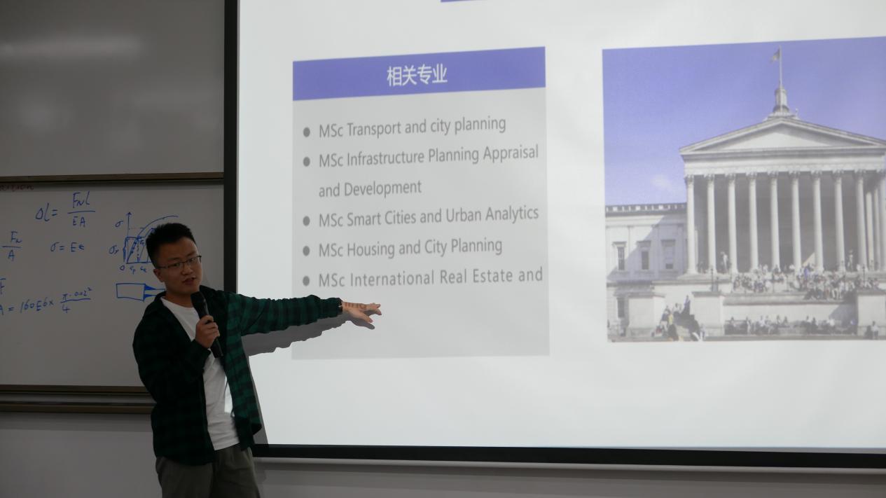 道路桥梁与渡河工程(国际工程班)2020级毕业生蔡杨迁为同学们分享了自己申请英国大学的经历,他今年顺利获得了英国帝国理工大学的硕士录取通知书。他就自己申请英国研究生的流程和部分英国名校在硕士申请方面的要求进行了分享,并鼓励同学们尽早规划,积极申请。