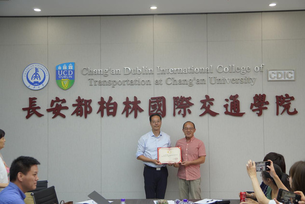 为了进一步提高英语教学质量,加强沟通与协调,学院聘请钟峰老师和李锦老师为英语课程年级负责人,负责与爱尔兰都柏林大学语言中心共同促进英语课程教学、英语课程全过程测评监督、英语课程质量监控等。汪海年分别为钟峰老师和李锦老师颁发了聘书。