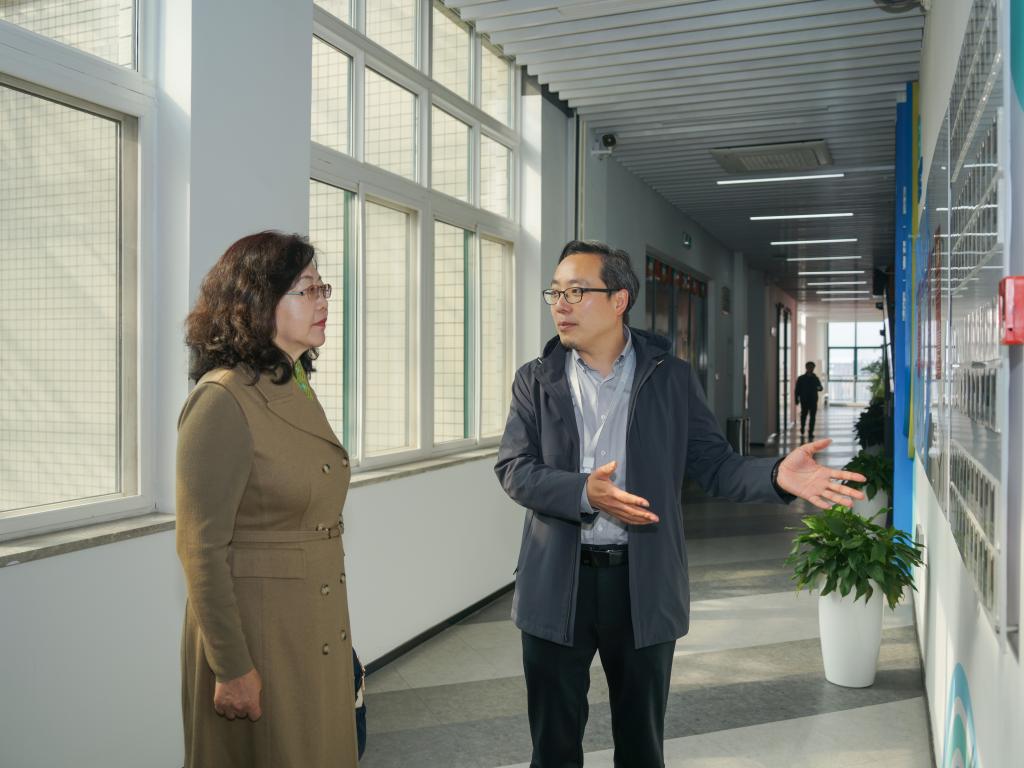 座谈会前,姚以亮带领调研团队对学院办学场地与环境设施进行了实地参观考察。