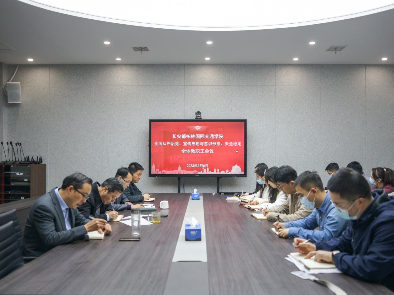 在鸿远教学楼四层会议室召开全体教职工会议,传达学校全面从严治党、宣传思想与意识形态以及安全稳定工作会议精神,并结合学院实际研究部署相关工作。学院领导班子、各部门负责人与全体教职员工参加会议。会议由学院党总支书记赵亮主持。