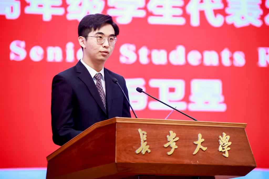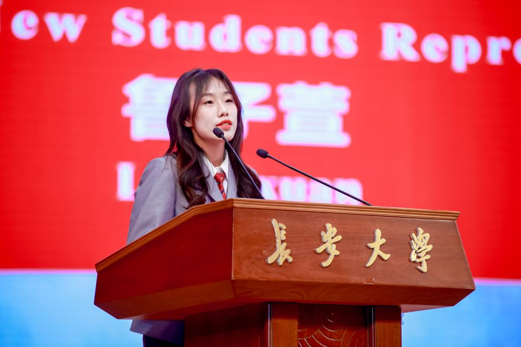 高年级学生代表毛卫昱和新生代表鲁子萱分别发言,分享自身感悟,号召全体同学独立思考、自主探索,树立远大理想和抱负,立志做有理想、敢担当、能吃苦、肯奋斗的新时代好青年。