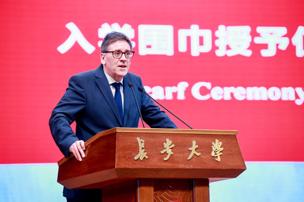 全体学生在Paul Fanning的主持下,参与了入学围巾授予仪式,这象征着2022级新生正式成为具有两校学籍的学生。