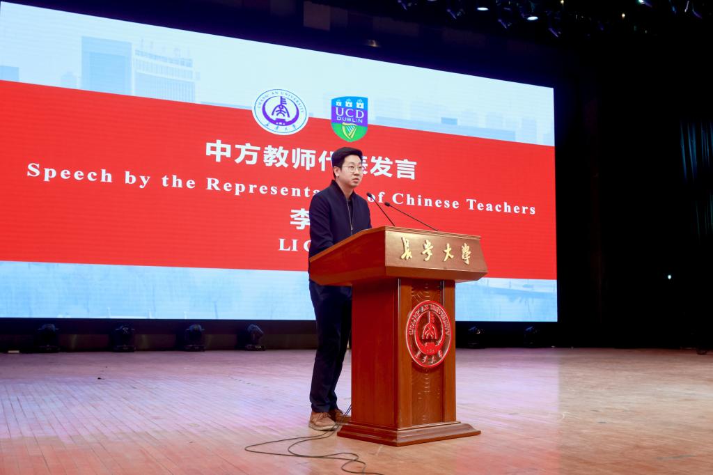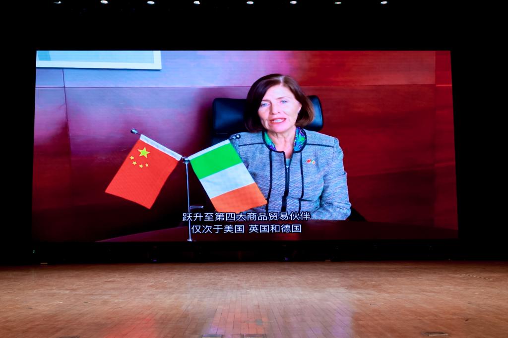 ,是中爱两国友好合作的例证之一,创新灵活的模式使两校实现有效沟通,并保持高质量的合作办学学术与教学水平。她对两校管理人员和教职工在过去疫情期间做出的努力表示感谢,并祝全体学生度过愉快的学习时光。她还就爱尔兰政府为国际学生提供的留学、就业等深造机会进行了介绍。