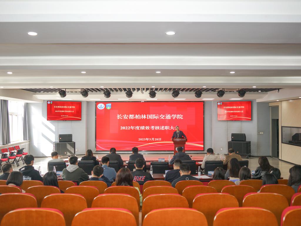 于鸿远教学楼四层报告厅召开了学院2022年度教职工绩效考核述职大会,学院院长汪海年,党总支书记赵亮,党总支副书记、副院长姚以亮,副院长柏强,全体教职工及11名师生代表参加会议。会议由姚以亮主持。