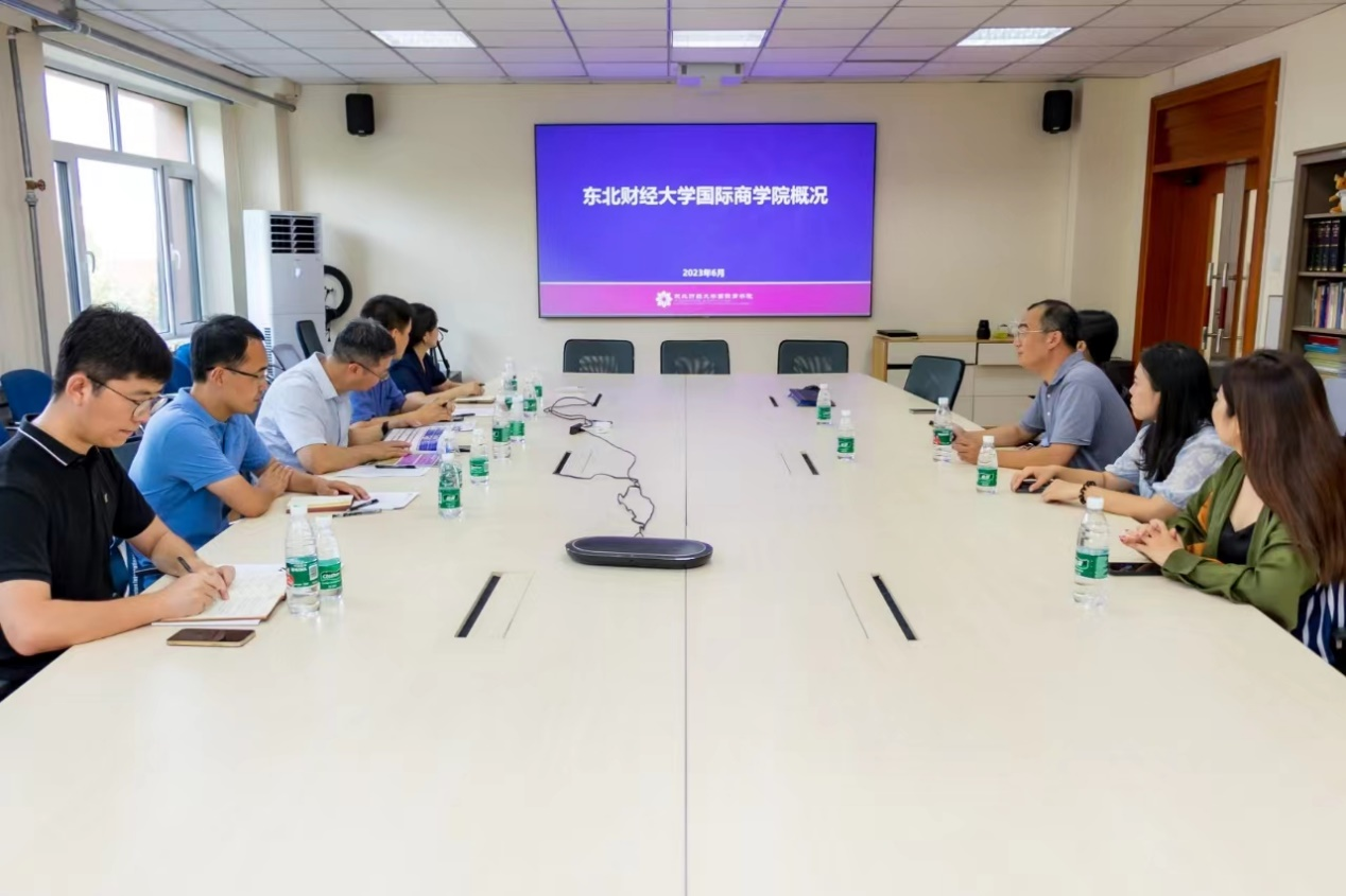 的基本情况。他表示,国际商学院人才培养模式多样,办学底蕴深厚,为国内中外合作办学项目和机构提供了良好示范,是值得学院学习借鉴的优秀榜样。中外合作办学联席会自成立以来,在凝聚中外合作办学力量、保障中外合作办学院校办学质量方面发挥了重要的主导和引领作用,作为会员单位,学院愿意积极承担联席会各项工作,为促进中外合作办学事业更高质量发展贡献力量。学院调研团队前往东北财经大学校史馆、跨境教育中心和国际商学院进行了参观。