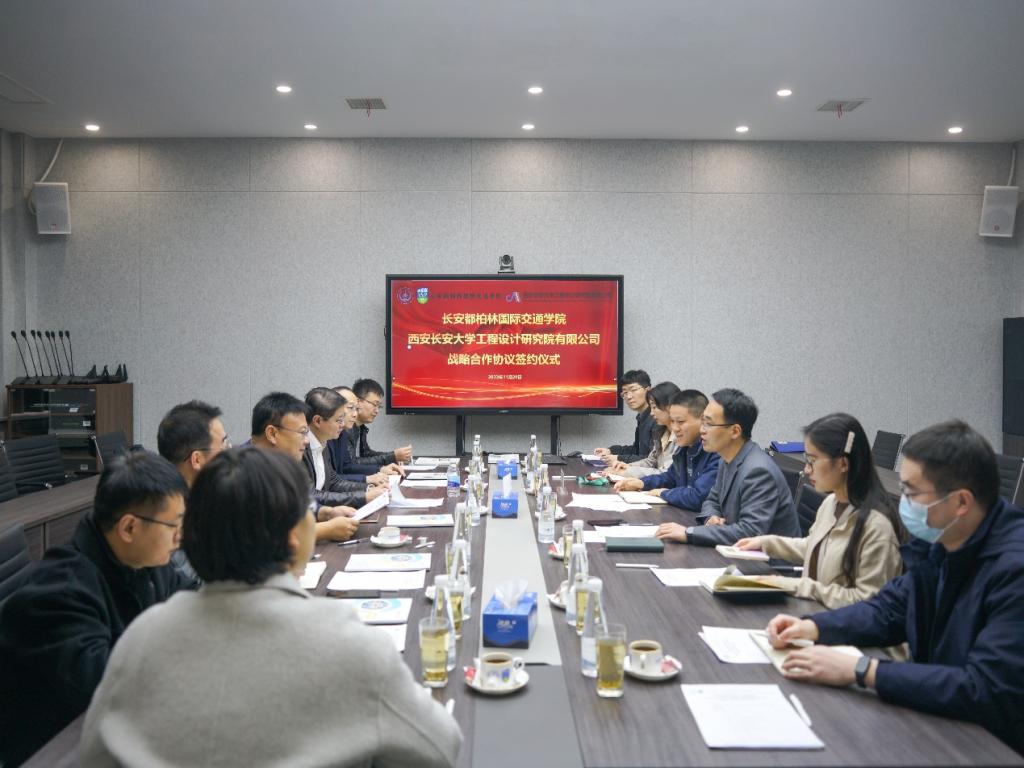 工程设计研究院有限公司战略合作协议签约仪式在鸿远教学楼四楼会议室举行,学院党总支书记赵亮和长大设计院总经理刘红平出席了签约仪式。