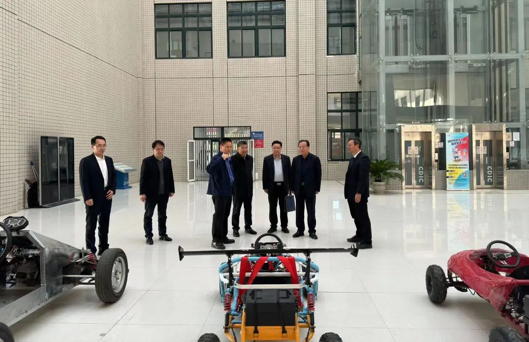 王海波先后前往学院学术报告厅、观摩教室、圆桌教室等办学空间,实地调研学院中外合作办学软硬件条件。在观看Automotive Design课程成果展示时,他对学生团队钻研专业、自主设计制造四轮单座小车给予充分赞许。