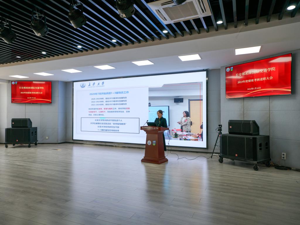 于鸿远教学楼四层报告厅召开2023年度工作述职大会,学院院长汪海年、党总支书记赵亮、副院长柏强、党总支副书记张艳萍、9名师生代表及全体教职工参加会议。会议由张艳萍主持。