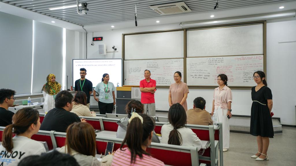 本次浸入式英语夏令营为期12天,共招募外籍教师12人、留学生志愿者24人,学院2023级本科生全员参加。夏令营期间,学院充分考虑师生需求,安排全体教职工全程在岗、精心组织,协调学校各职能部门,全面做好课堂质量监控及后勤保障工作。