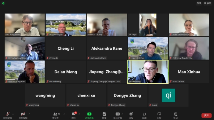 院长张久鹏、都柏林大学中国地区教务长Paul Fanning、学院副院长李程、副教务长Catherine MacKenzie、双方专业学院负责人及学院教学教务部全体成员参加了本次会议。