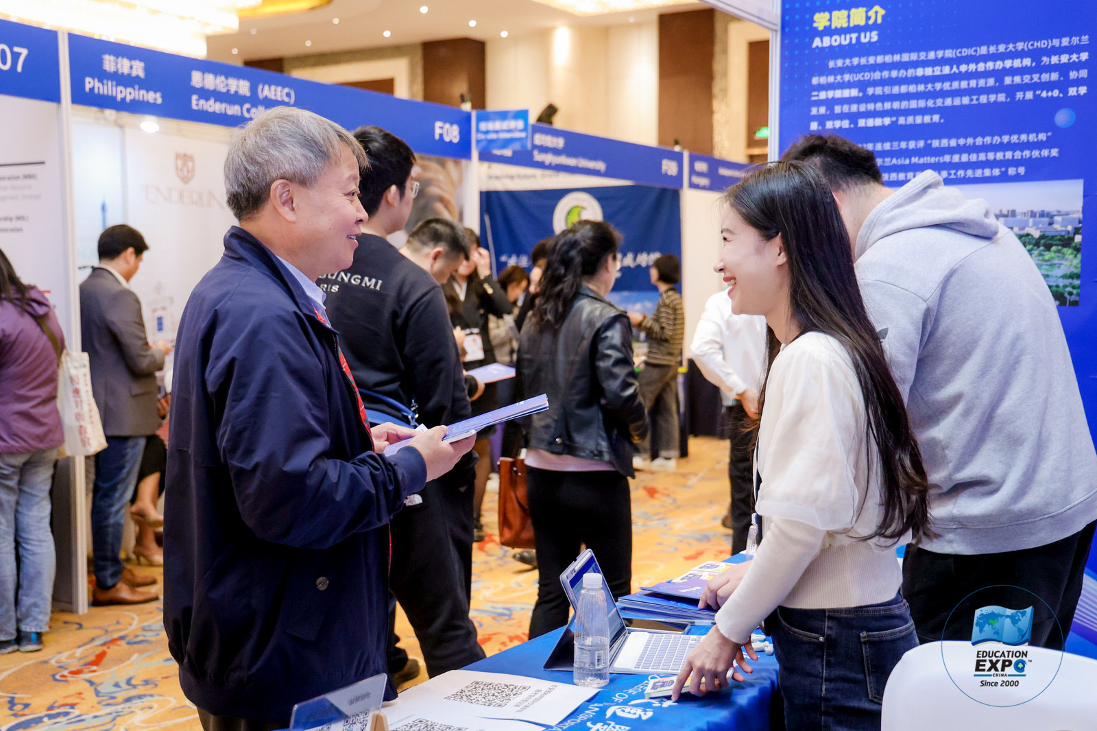 通过精心设计的展位布置与宣传资料,全面展示了学院在中外合作办学方面的专业优势、教学质量、发展前景以及人才培养情况,吸引了众多参观者的目光。