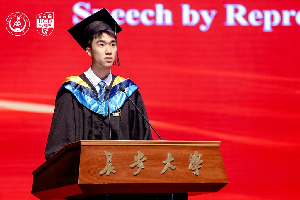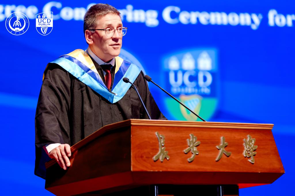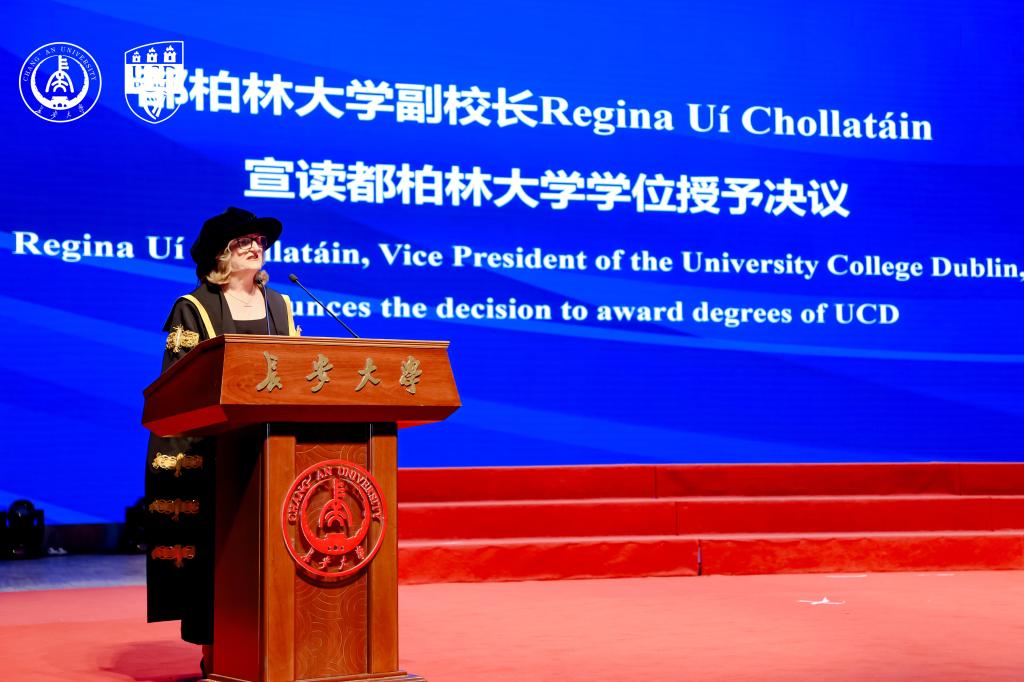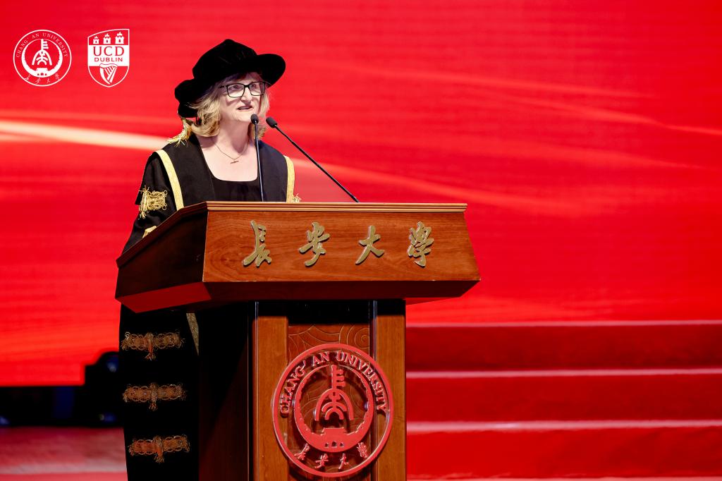 在毕业典礼上,Regina Uí Chollatáin表示,两校依托交通与环境政策等领域的深厚积淀与优势互补,在学院引入国际领先教学理念,致力于培养学生批判性思考能力与跨文化视野,助力他们在全球舞台应对挑战。她强调都柏林大学重视国际合作,以“引入世界精华、输出爱尔兰智慧”为全球战略核心理念,以学生参与跨文化交流项目等实践践行理念。Regina Uí Chollatáin还向毕业生发出邀请,欢迎他们加入都柏林大学超30万校友的全球网络,期待分享他们的未来成就,并祝福学子们前程似锦。