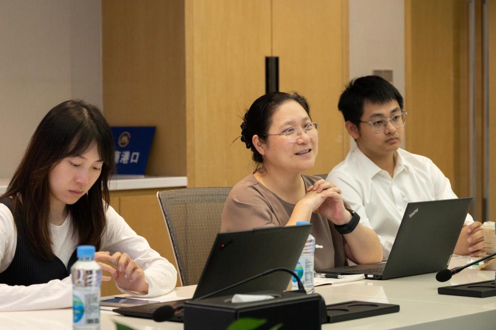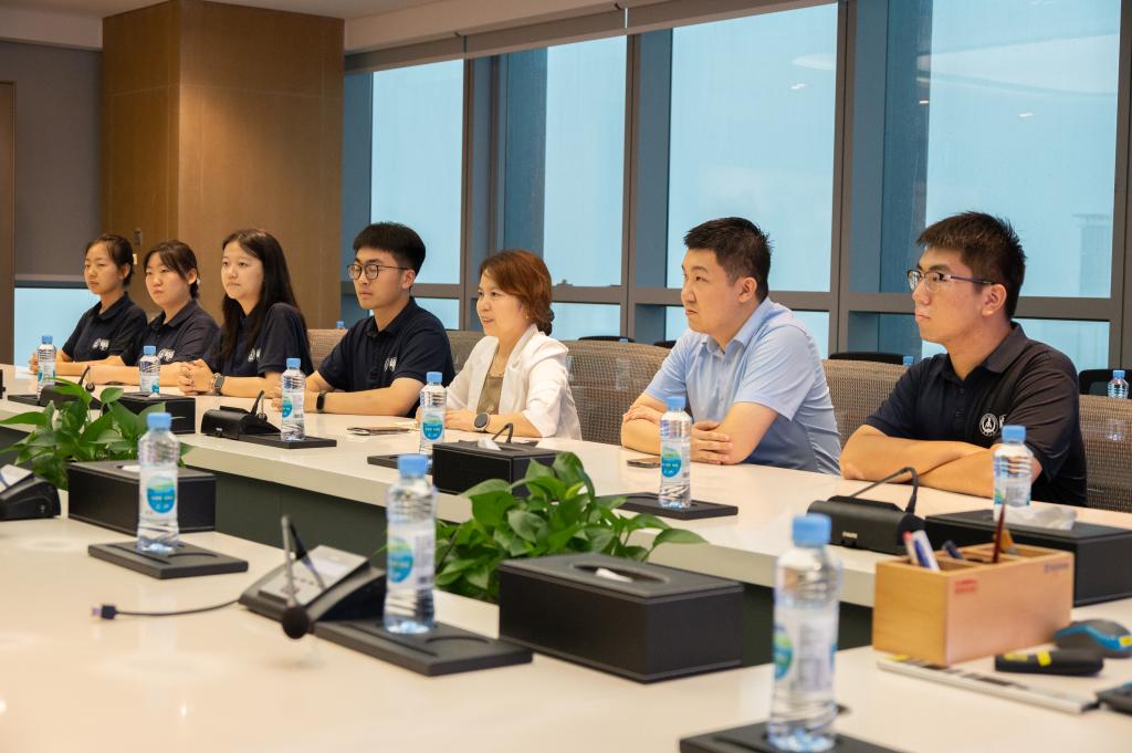 徐青青对实践队来访表示热烈欢迎,并介绍了企业的发展历程、业务布局、技术创新成果及人才需求情况。她提到,随着全球贸易格局变化和技术迭代加速,企业在智慧港口系统开发、低碳能源应用等领域面临大量技术攻关任务,亟需大量专业型、创新型人才。期待与学校建立常态化沟通机制,在人才联合培养、科研项目攻关、科技成果转化等方面深化合作,实现资源共享、互利共赢。
