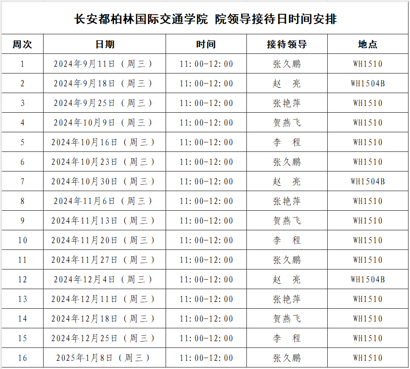 为广泛听取师生员工对学院各项工作的意见和建议,促进学院建设与发展,结合现阶段学院工作实际,现将本学期院领导接待日安排通知如下: