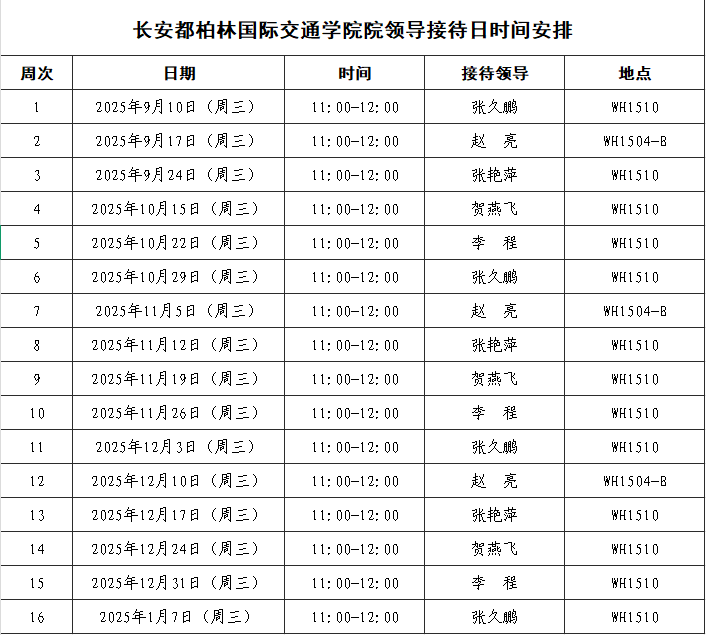 为广泛听取师生员工对学院各项工作的意见和建议,促进学院建设与发展,结合现阶段学院工作实际,现将本学期院领导接待日安排通知如下: