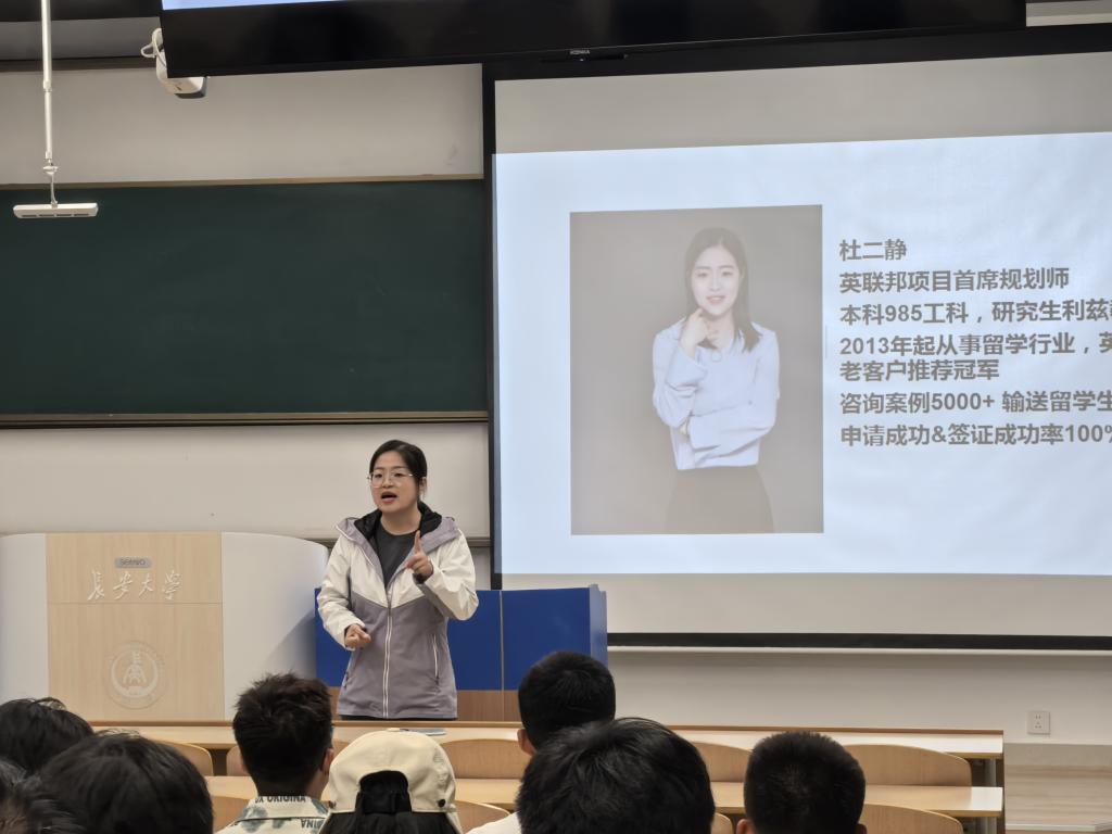 活动伊始,杜二静向同学们介绍了出国留学前在大学不同阶段所需做出的准备。她详细分析了在美国、英国、德国、澳大利亚和香港等地区留学的优势与劣势,帮助同学们清晰地确定未来留学规划的方向。随后,她根据同学们的提问,解答了有关各国饮食和风俗等方面的问题,帮助同学们全面了解海外留学生活。