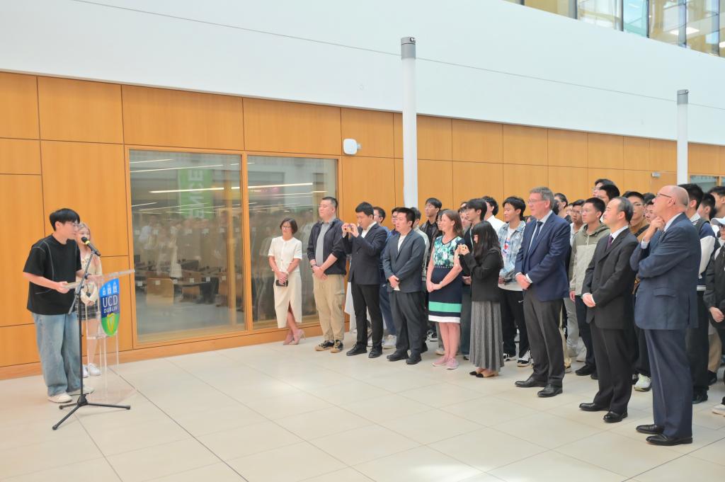 赵希源大使在致辞中表示,当前中爱关系持续健康发展,务实合作成果显著。教育交流始终是中爱关系的重要组成部分,都柏林大学与中国高校在合作办学方面长期保持紧密联系,取得丰硕成果。他鼓励在场中国学生珍惜此次赴爱学习交流的机会,深入了解爱尔兰文化与社会,积极传播中国声音,成为促进交流、增进理解、推动和平与发展的桥梁和纽带。