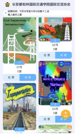为展现学院国际风采,增强学院文化软实力,培养学院学生创新创造能力,提升国际化视野,营造国际化氛围,融合中国与爱尔兰文化元素,彰显学院的专业特点与办学特色,近日,学院“国际视野,专业风采”Poster征集活动正如火如荼进行中,同学们参与热情高涨,共向全院征集到高质量有效Poster作品40余件,现将作品进行网络展示并启动投票环节,并开启为期3天的投票通道,每人每天可投三票。公开评选投票日期为11月12日至11月14日晚12点,快来为自己喜爱的作品投票吧!