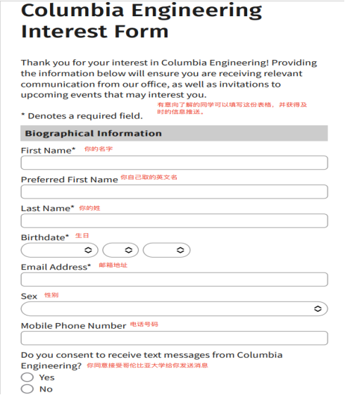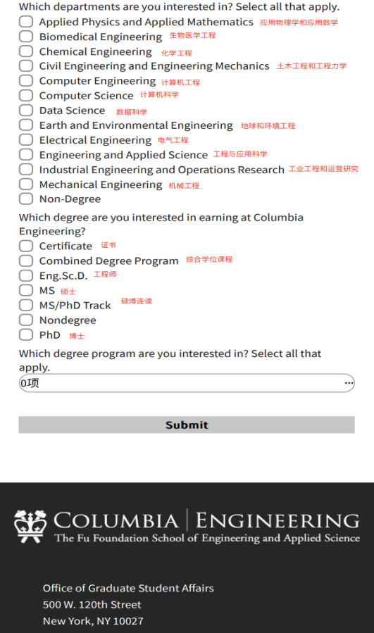 考虑到咱们学院的学科特色,特别以工程学院申报为例,让我们看看哥大的申报意向表,供宝子们参考: