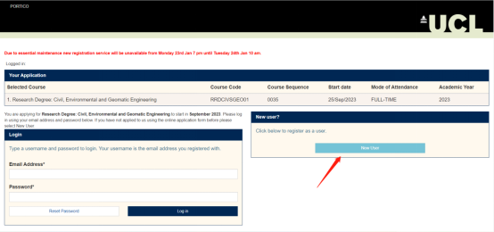 开始网申,如果是新账户,选择New User进行注册