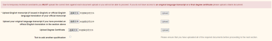 此处需要上传经过官方翻译的英文成绩单,及成绩单原件和学位证书