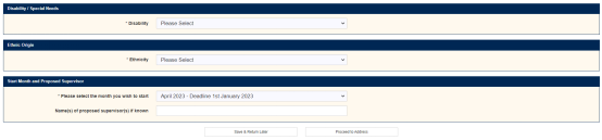 接下来三个是关于残疾问题,种族问题,课程开始时间和已知导师的姓名(不是必填),之后点击Proceed to Address进行下一步