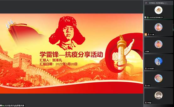 学生会通过腾讯会议举行学雷锋系列活动“疫情防控志愿者事迹分享会”,2021级学生曲冠楠、2020级学生张泽凡、2019级学生白奥文三位志愿者代表分别讲述抗疫经历,身体力行传承和弘扬雷锋精神。